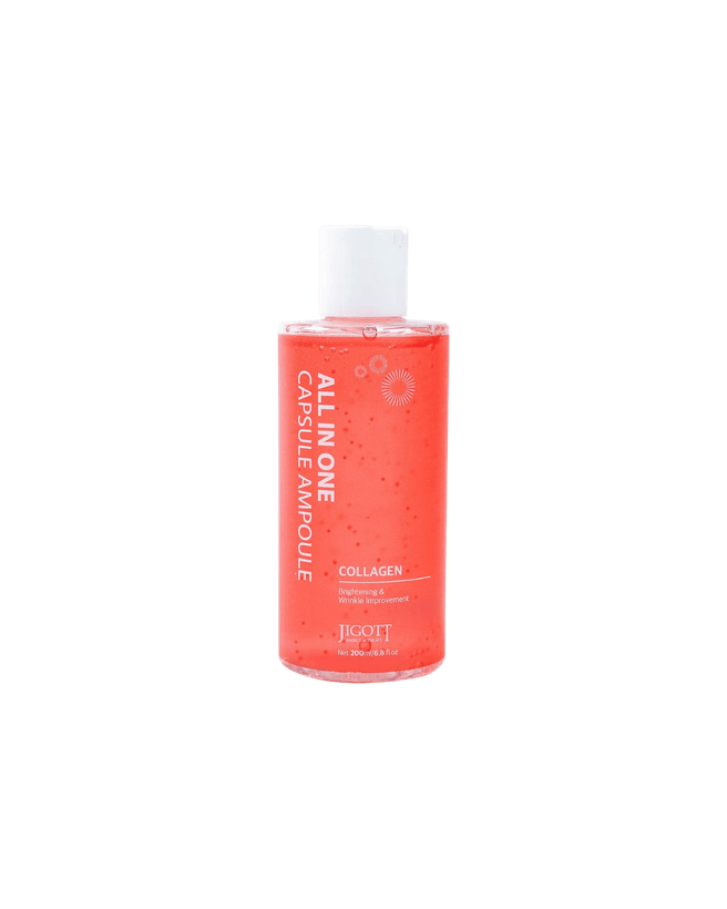 محصول Jigott All-In-One Collagen Capsule Ampoule یک آمپول کپسولی چندکاره حاوی کلاژن است که برای روشنکنندگی پوست و کاهش چین و چروک طراحی شده است. این سرم حاوی ذرات کپسولی کلاژن بوده که به ترمیم، تغذیه و آبرسانی پوست کمک میکند.